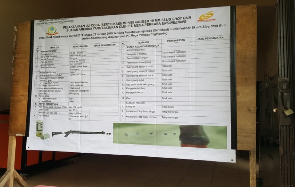 Gallery : Uji Coba Sertifikasi Munisi Kal 19 mm Slog Shot Gun Buatan Amerika 6 Maret 2019 di Lab Dislitbangad
